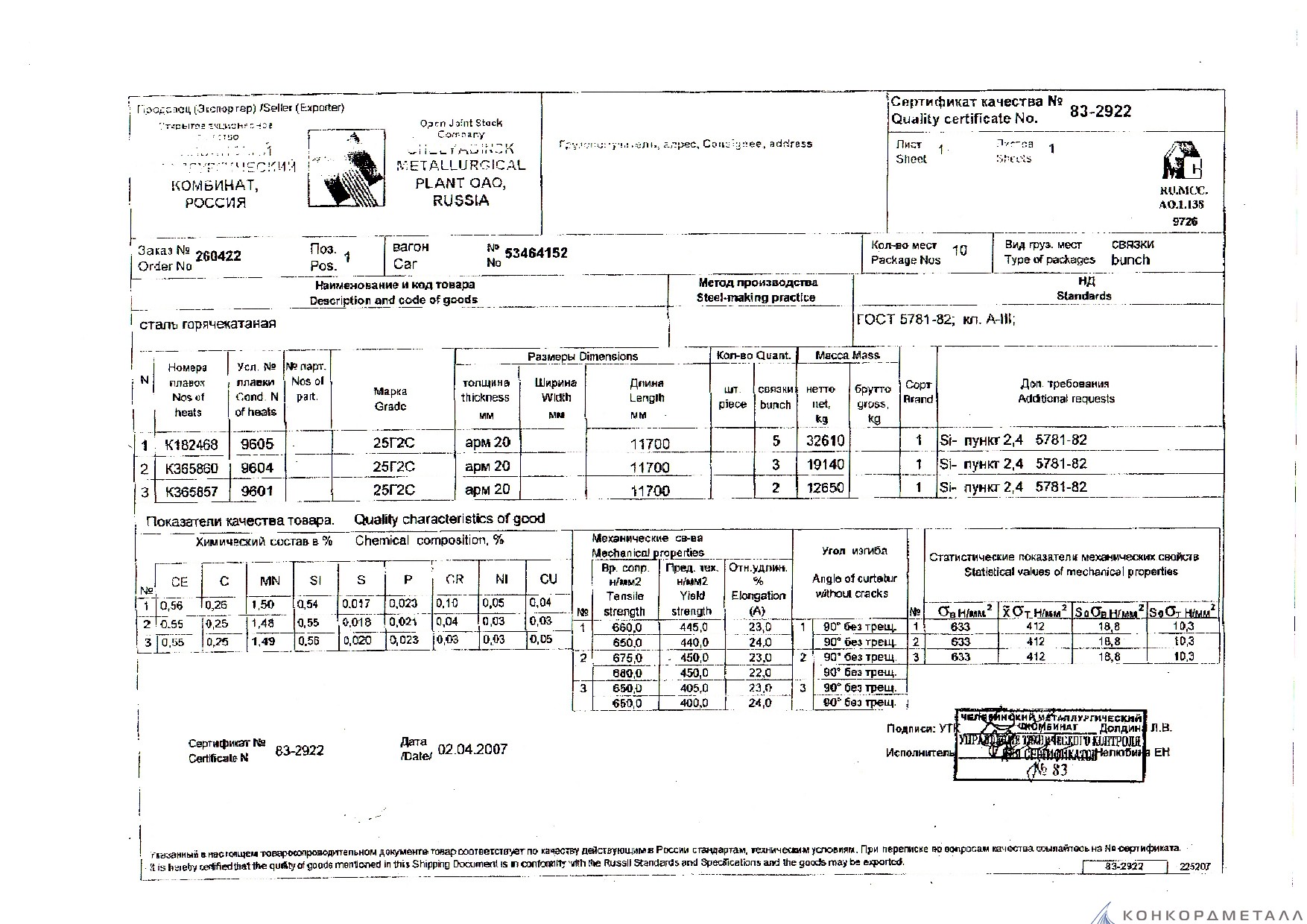 С каждой товарной позицией мы предоставляем все сертификаты и паспорта качества, а также товарно-транспортную накладную.